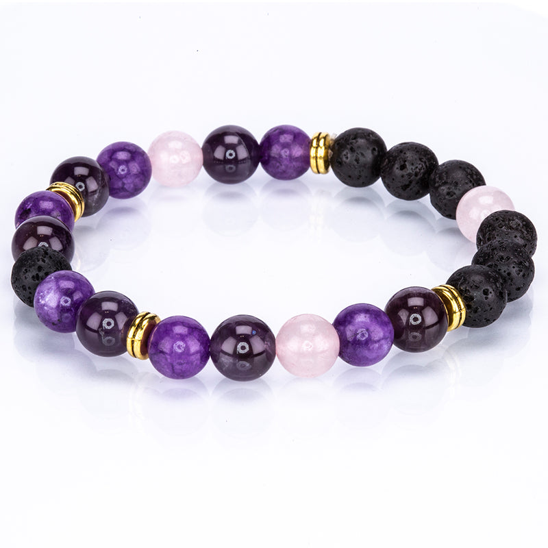 Arany tónusú Emporia Ötvözetű Karkötő Ametiszttel és Lávakővel