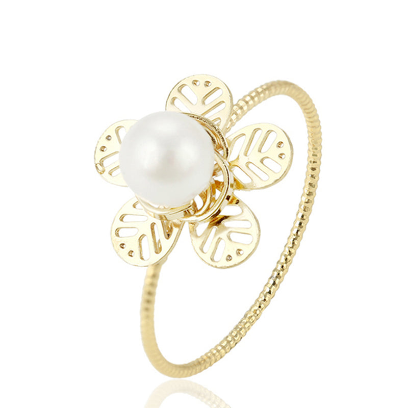 Arany tónusú Emporia Ötvözetű Gyűrű Üveggyönggyel