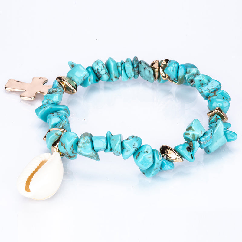 Arany tónusú Emporia Ötvözetű Karkötő Türkizzel és Kagylóhéjjal