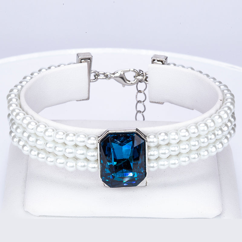 Arany tónusú Emporia Ötvözetű Karkötő Gyönggyel és Kék Emporia® Kristállyal