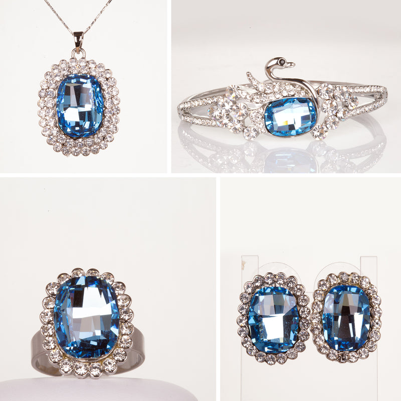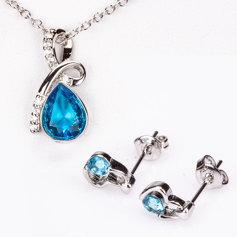 Arany tónusú Emporia Ötvözetű Szett Kék Emporia® Kristállyal ( Nyaklánc+Fülbevaló+Medál )
