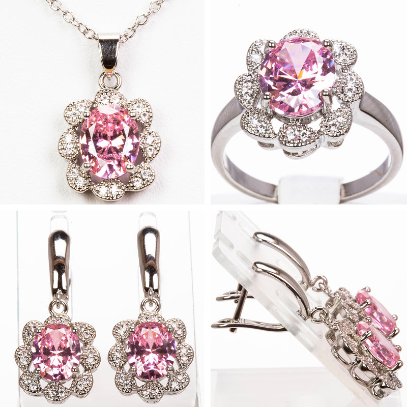 Arany tónusú Emporia Ötvözetű Szett Rózsaszínű Emporia® Kristállyal és Fehér Emporia® Kristállyal ( Fülbevaló+Gyűrű+Medál )
