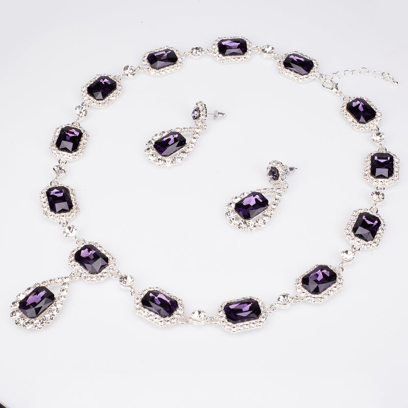 Arany tónusú Emporia Ötvözetű Szett Lila Emporia® Kristállyal és Fehér Emporia® Kristállyal ( Nyaklánc+Fülbevaló )