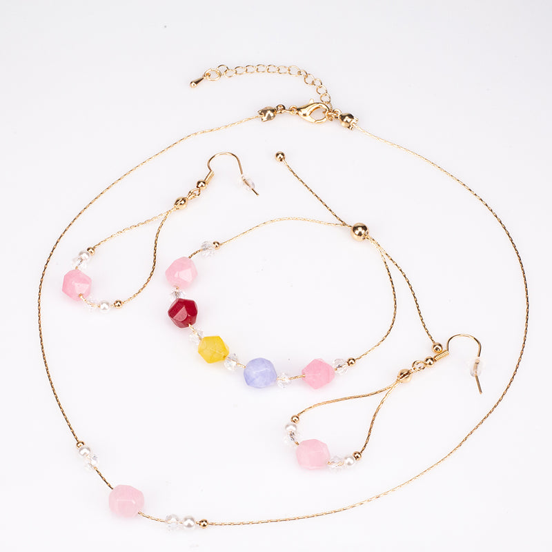 Arany tónusú Emporia Ötvözetű Szett Üveggyönggyel ( Nyaklánc+Fülbevaló+Karkötő )