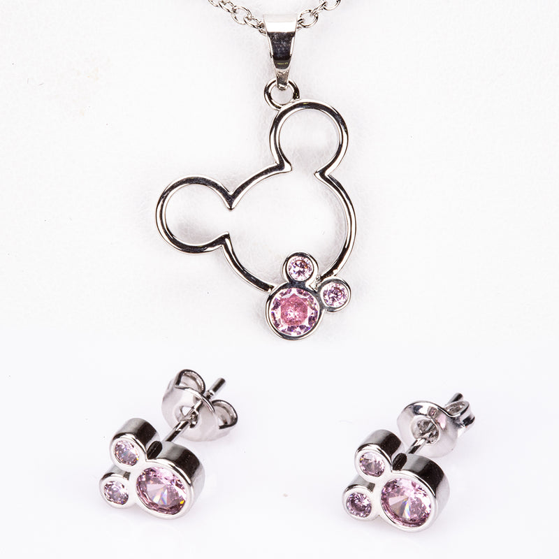 Arany tónusú Emporia Ötvözetű Szett Rózsaszínű Emporia® Kristállyal ( Nyaklánc+Fülbevaló+Medál )