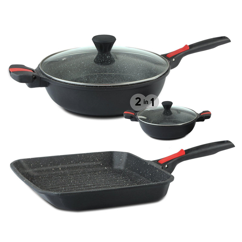 Berlinger Haus 3 részes serpenyőkészlet márvány bevonattal, levehető nyéllel, fedővel