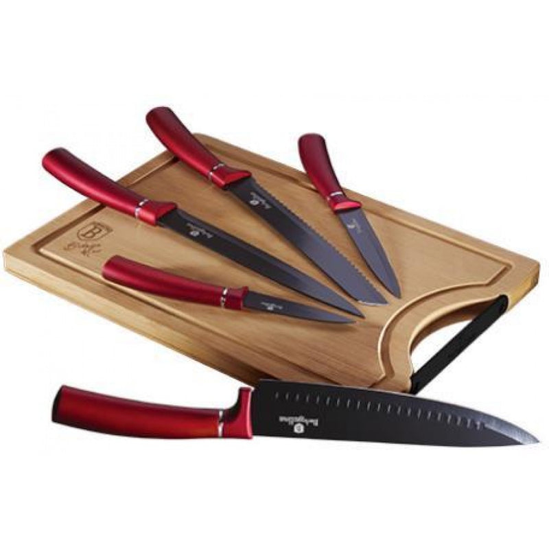 Berlinger Haus 6 részes késkészlet bambusz vágódeszkával, Burgundy Metál Kiadás