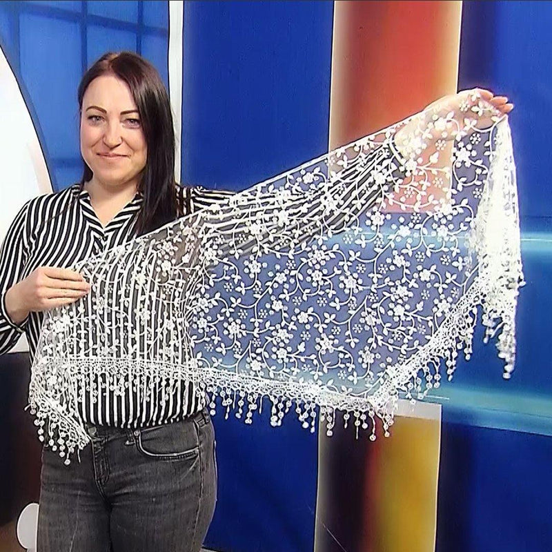 Csillogó Virág Mintás Háromszög Sál-Kendő, 45 cm x 45 cm x 170 cm, Fehér