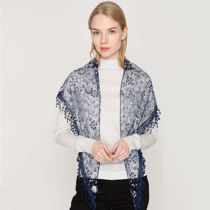 Csillogó Virág Mintás Háromszög Sál-Kendő, 45 cm x 45 cm x 170 cm, Kék