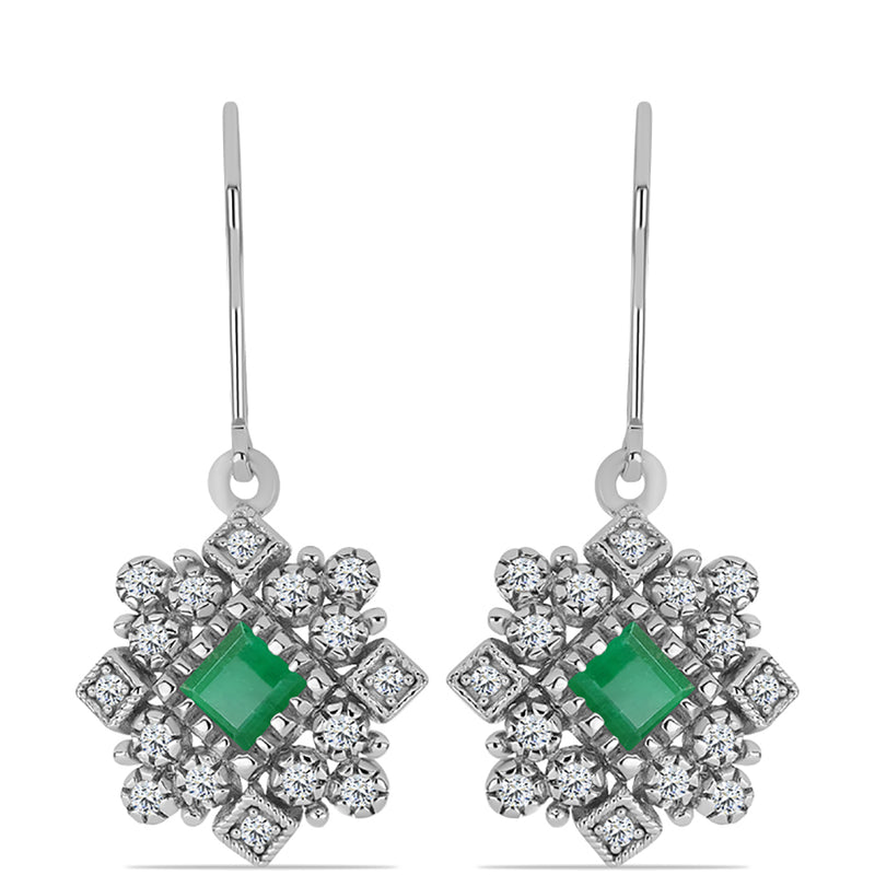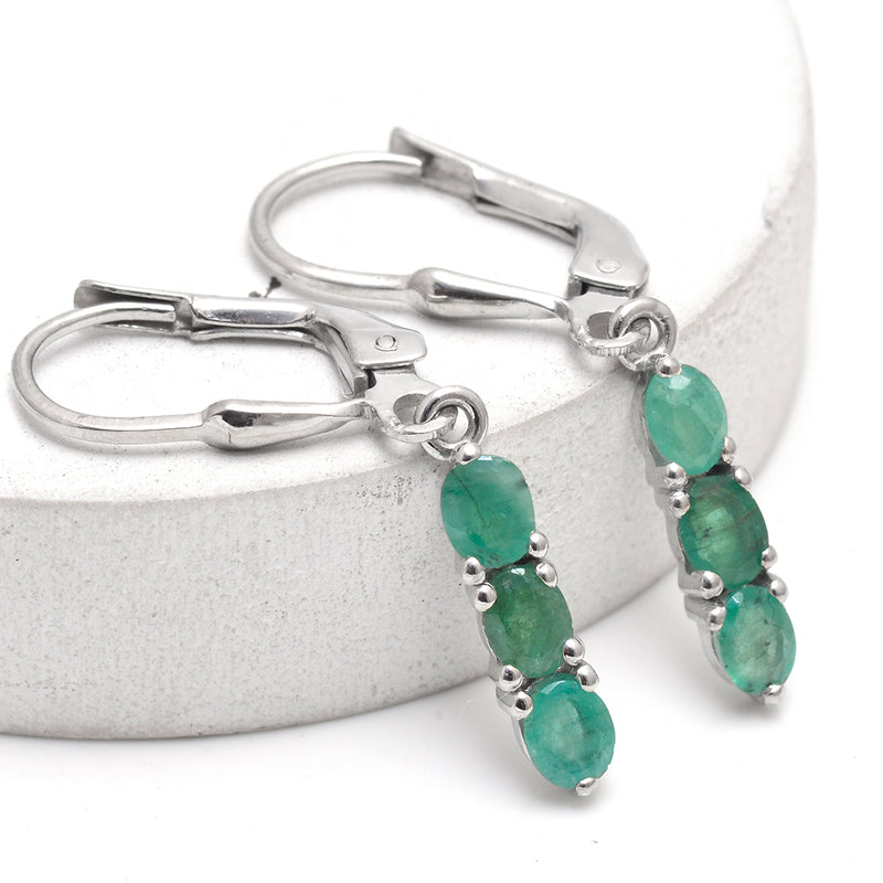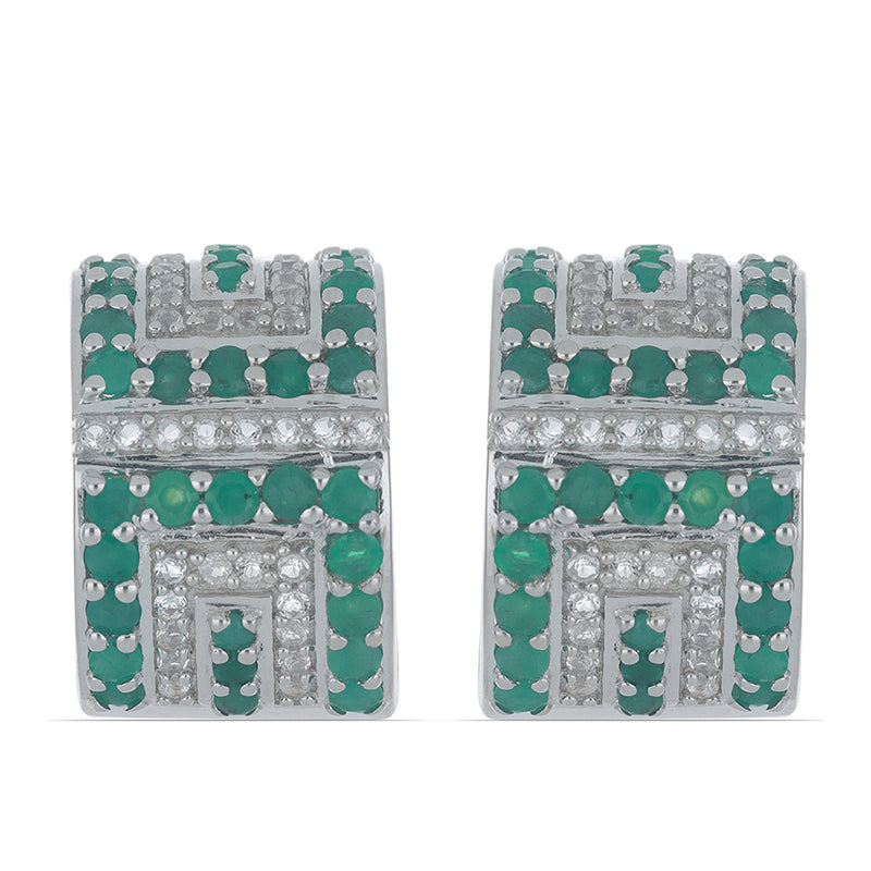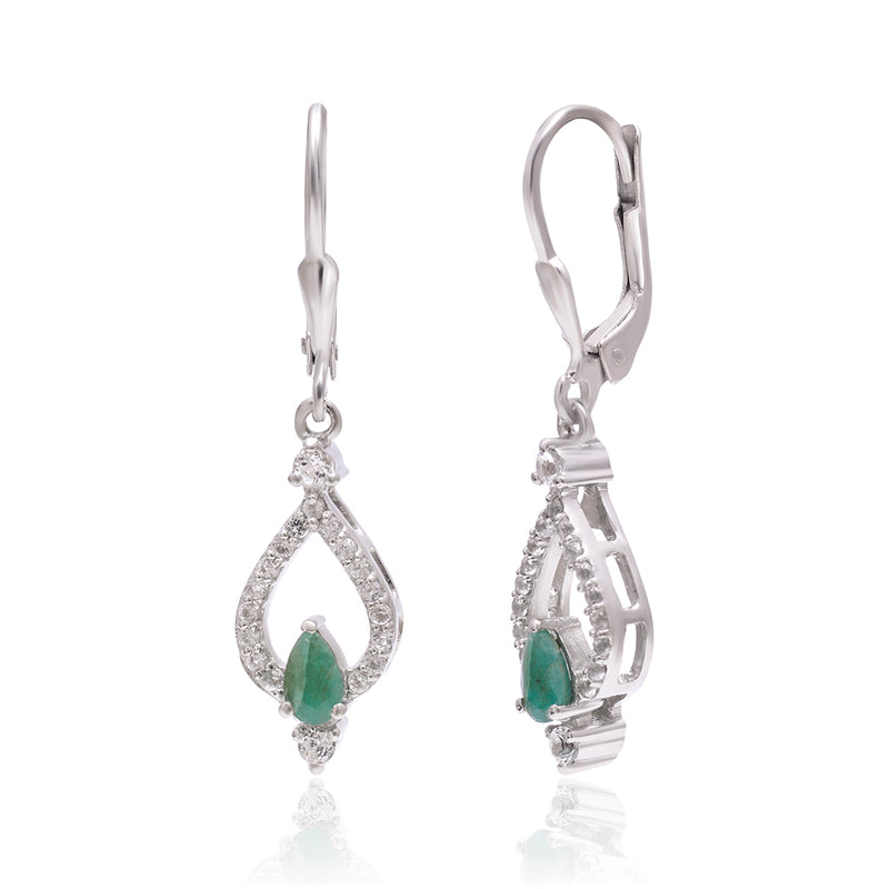 Ezüst Fülbevaló Brazil Smaragddal és Fehér Topázzal