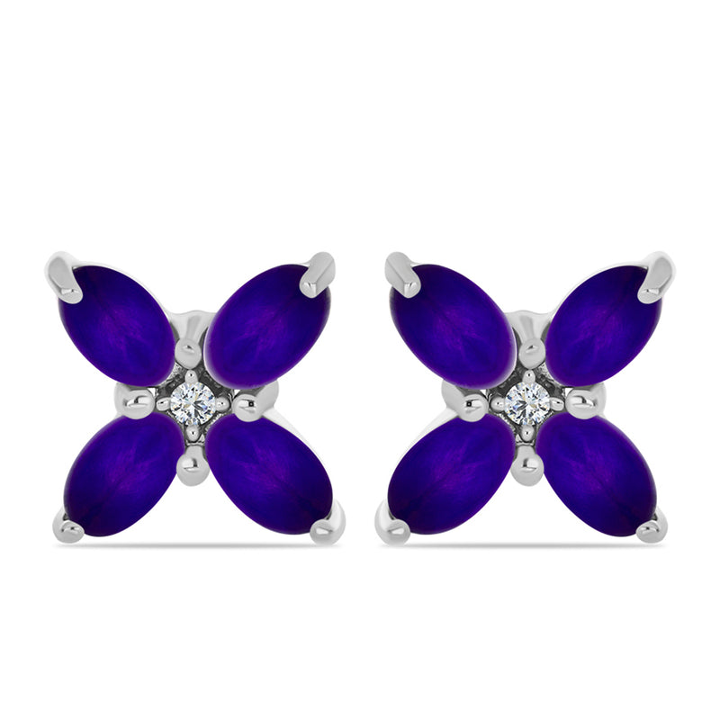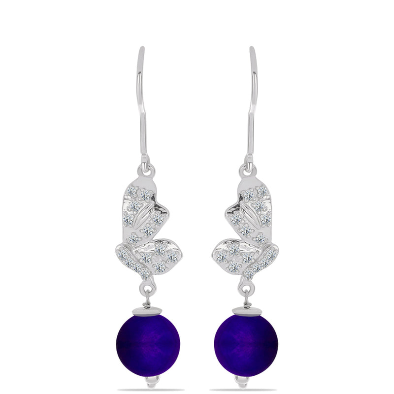 Ezüst Fülbevaló Bíbor Jádéval és Fehér Topázzal