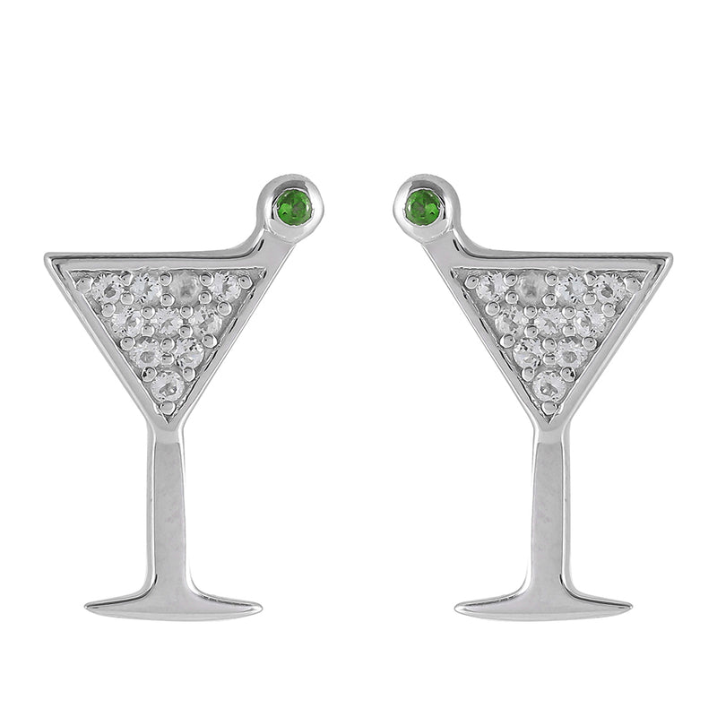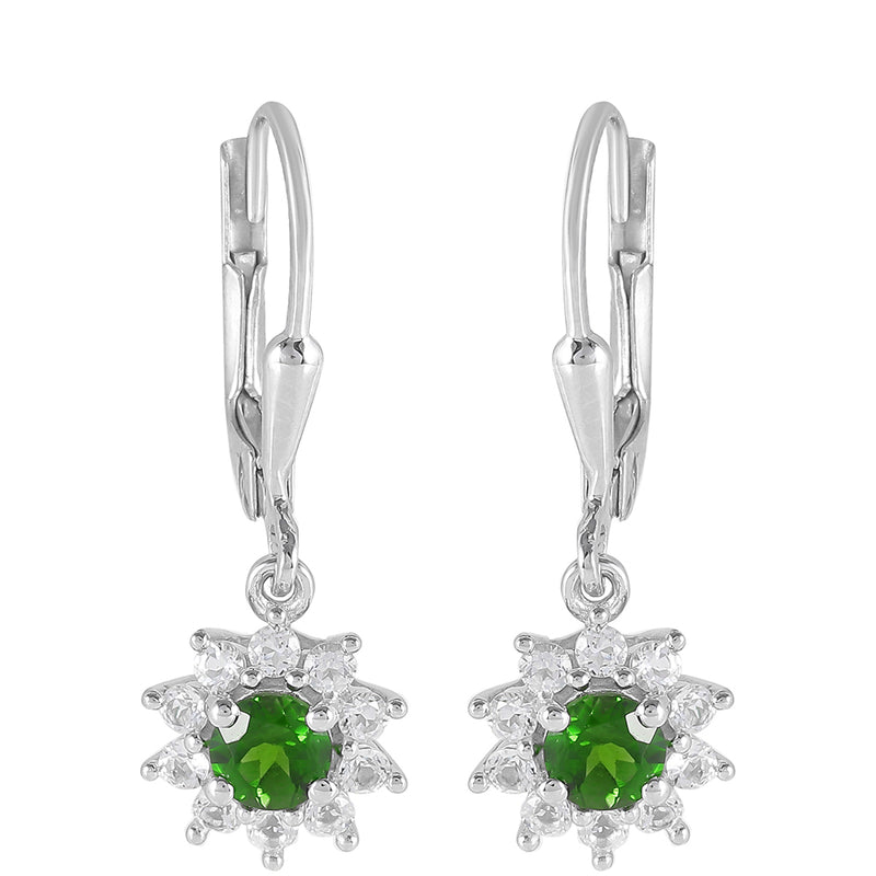 Ezüst Fülbevaló Króm Diopsziddal és Fehér Topázzal