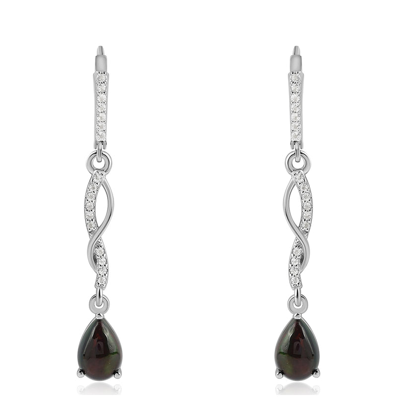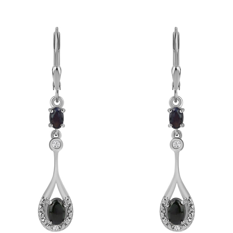 Ezüst Fülbevaló Lega Dembi Éjfekete Etiópiai Opállal és Fehér Topázzal