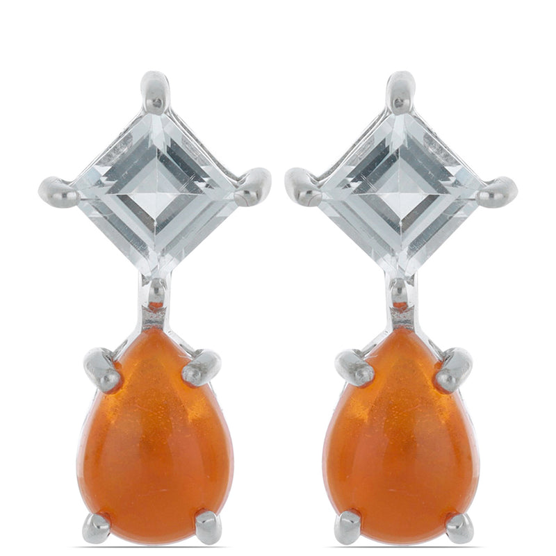 Ezüst Fülbevaló Lega Dembi Narancs Opállal és Fehér Topázzal
