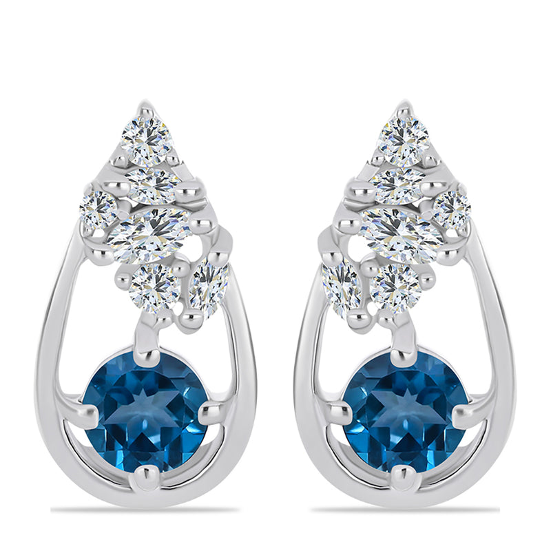 Ezüst Fülbevaló London Kék Topázzal és Fehér Topázzal