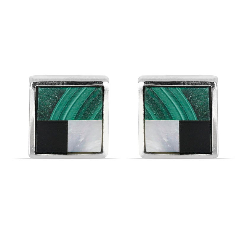 Ezüst Fülbevaló Malachittal, Gyöngyházzal és Suwari Fekete Onixszal