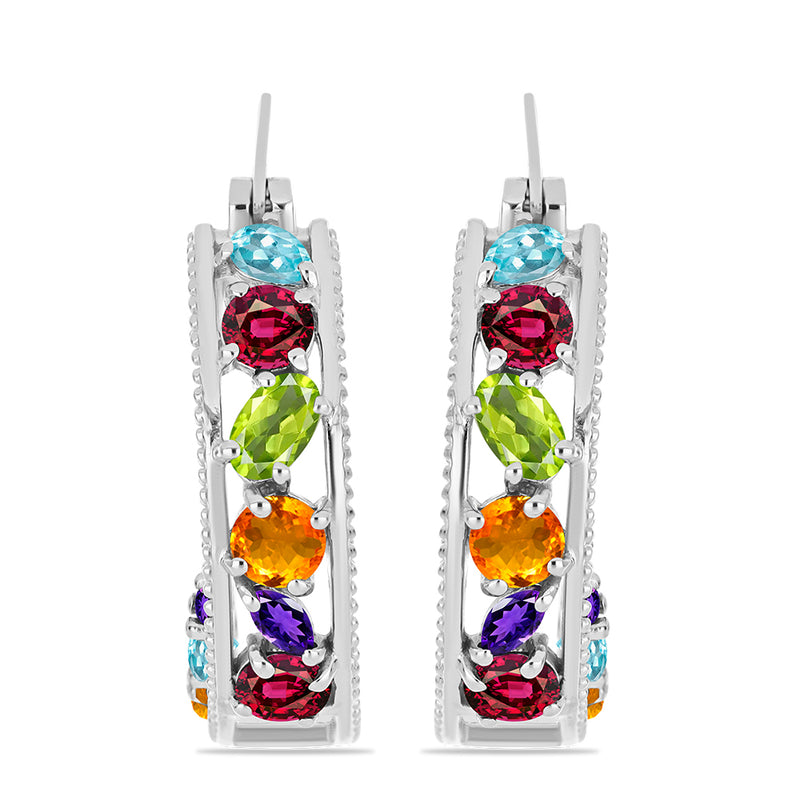 Ezüst Fülbevaló Marokkói Ametiszttel és Changbai Peridottal