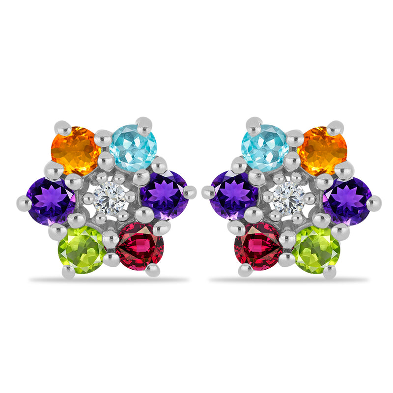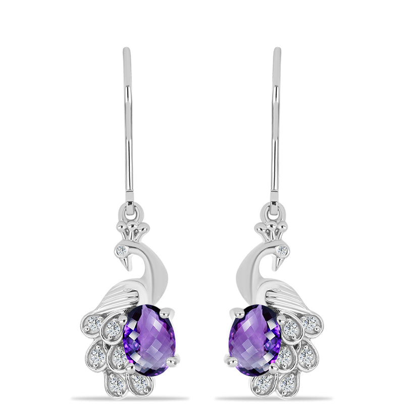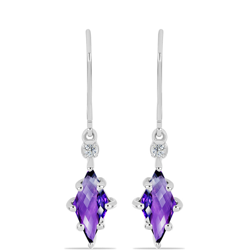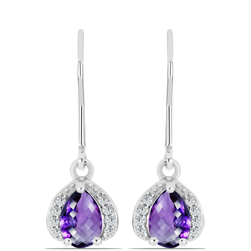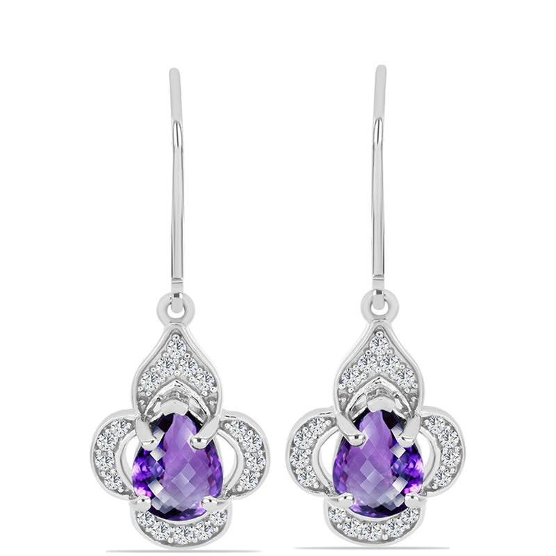Ezüst Fülbevaló Marokkói Ametiszttel és Fehér Topázzal