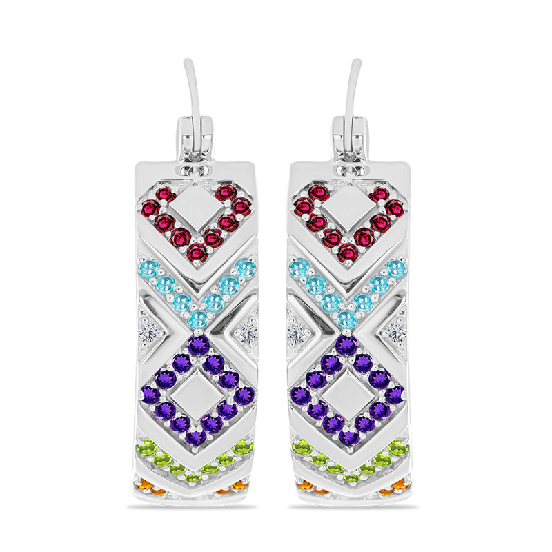 Ezüst Fülbevaló Madagaszkári Rubinnal és Fehér Topázzal