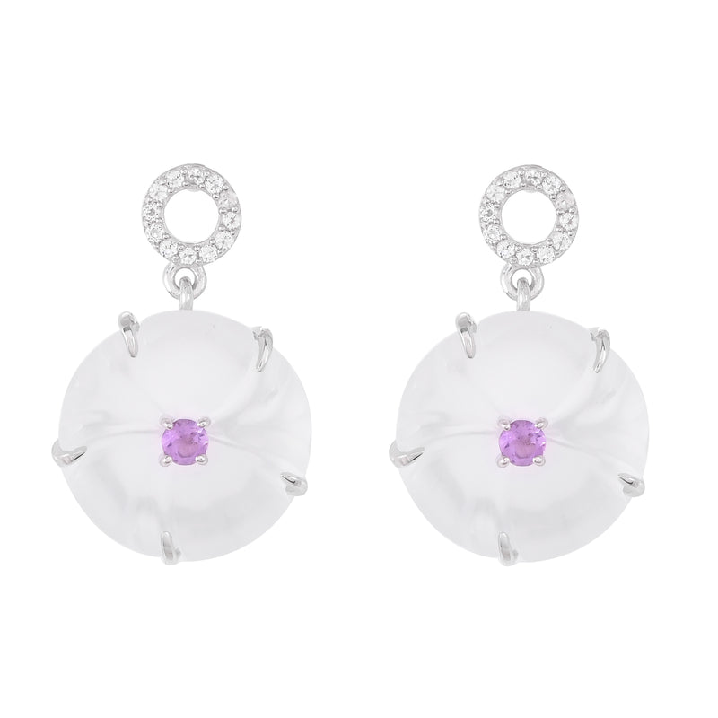 Ezüst Fülbevaló Optikai Kvarccal és Rózsaszínű Ametiszttel