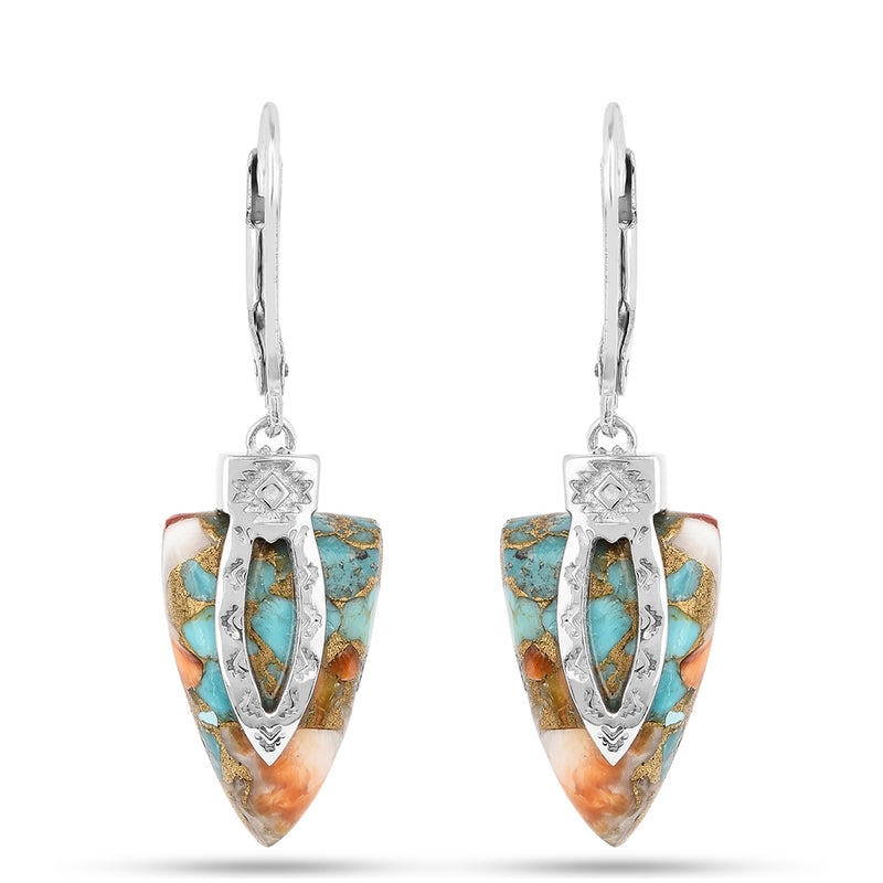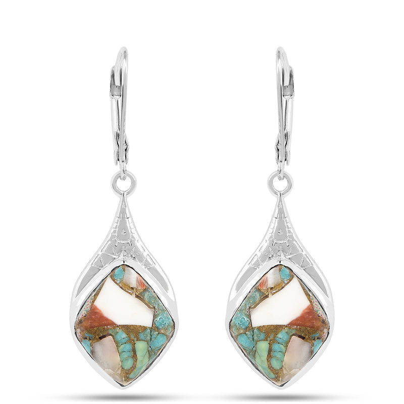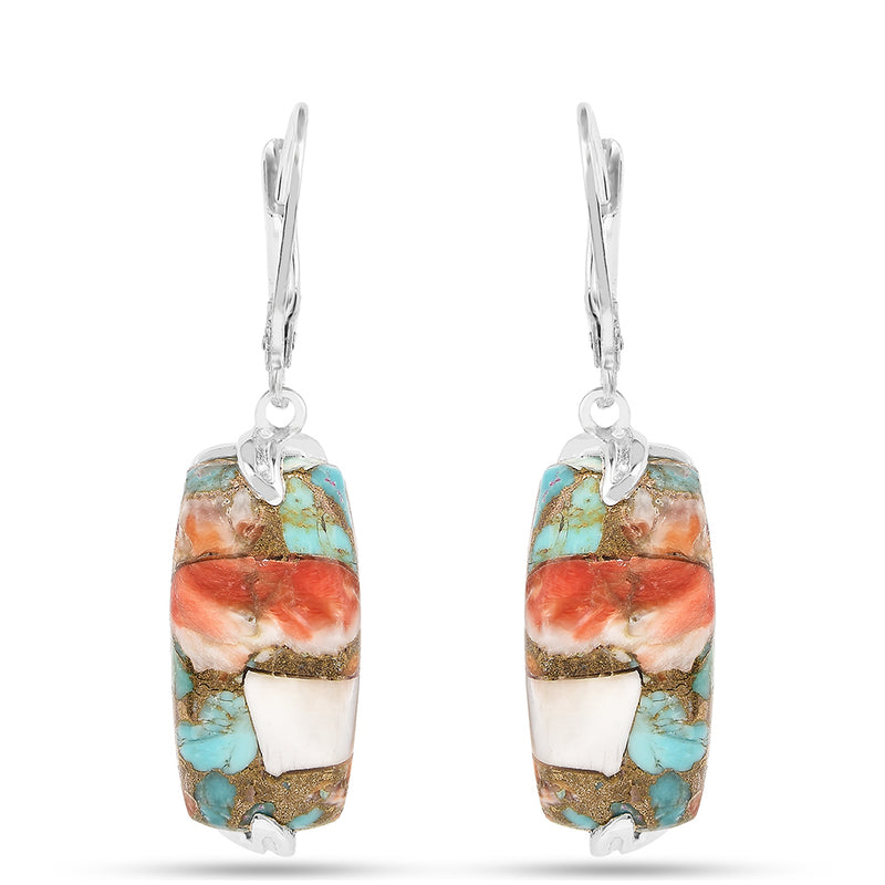 Ezüst Fülbevaló Osztriga Türkizzel és Vörös Korallal
