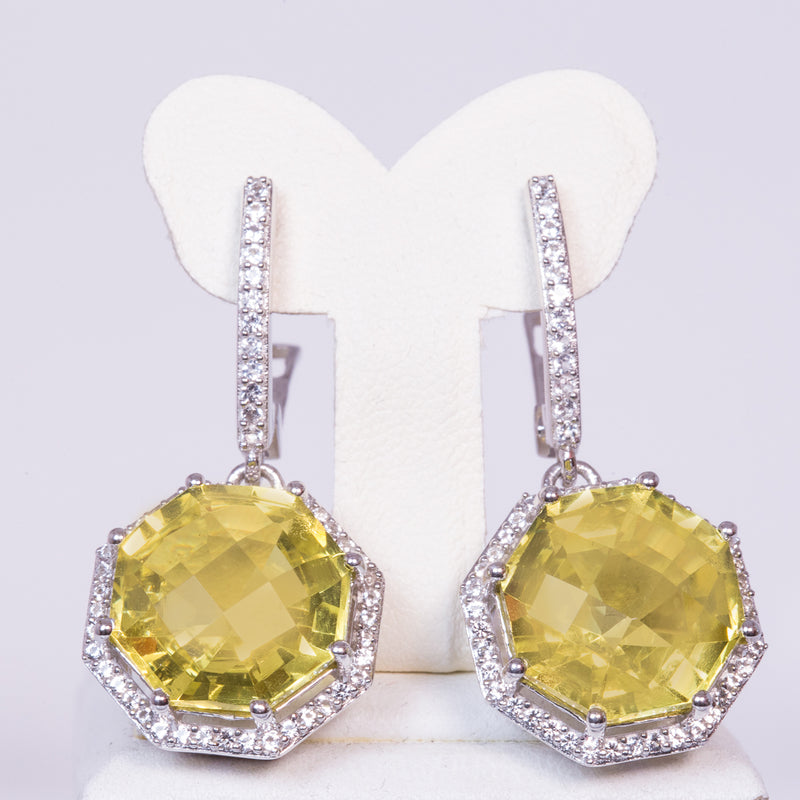 Ezüst Fülbevaló Mesterséges Diasporral és Fehér Topázzal