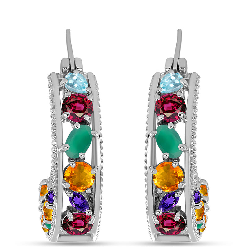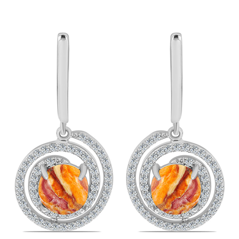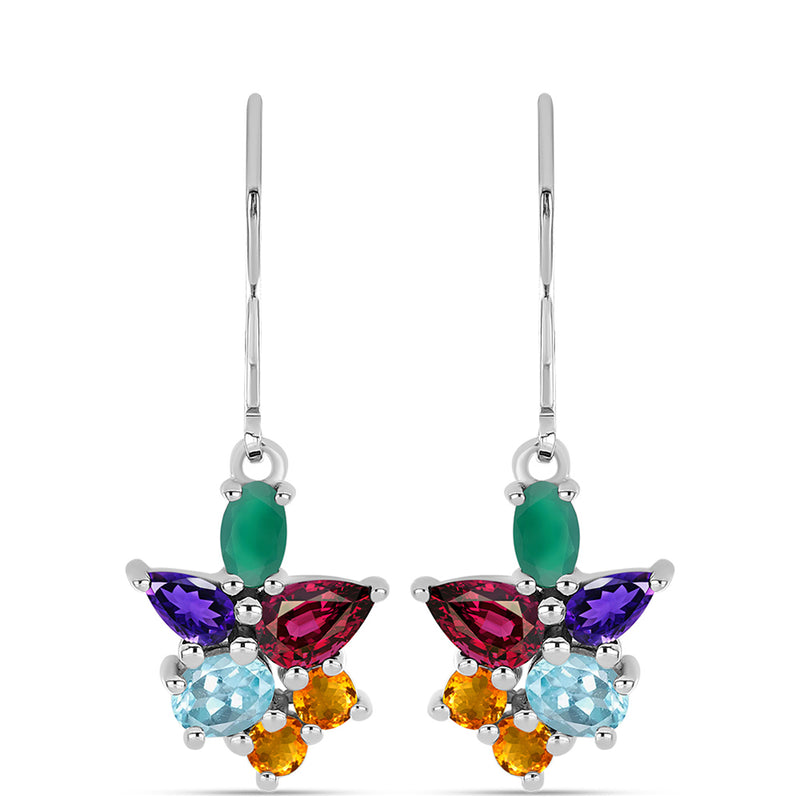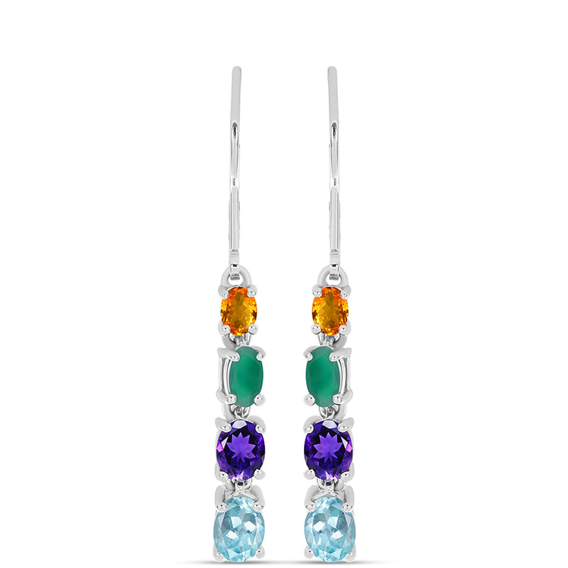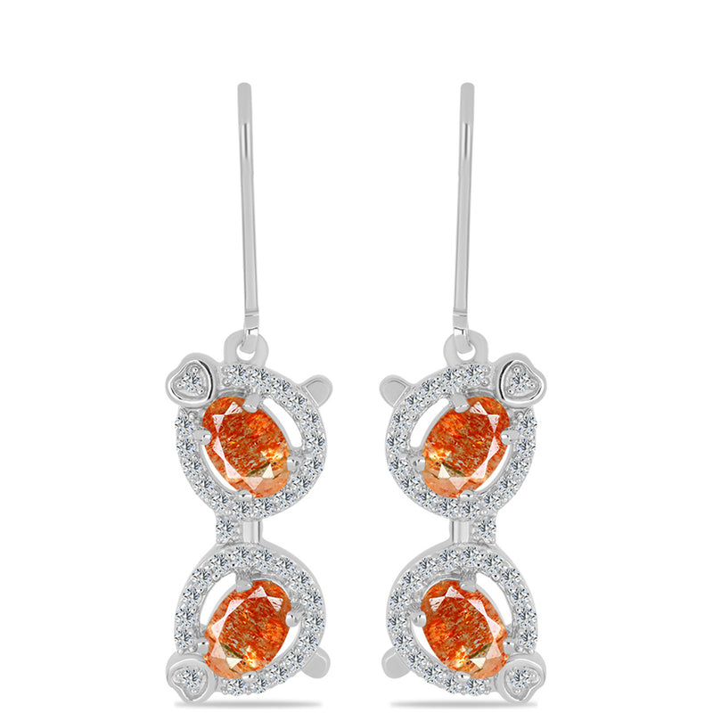 Ezüst Fülbevaló Oregoni Napkővel és Fehér Topázzal
