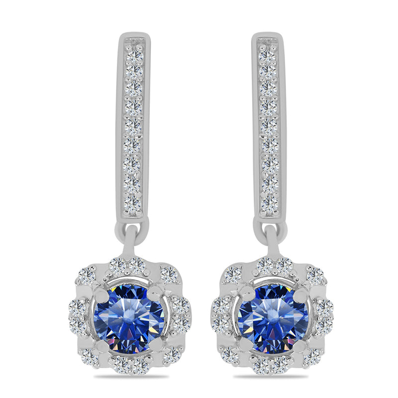 Ezüst Fülbevaló Minősített laboratóriumban előállított Királykék Moissanite-tel