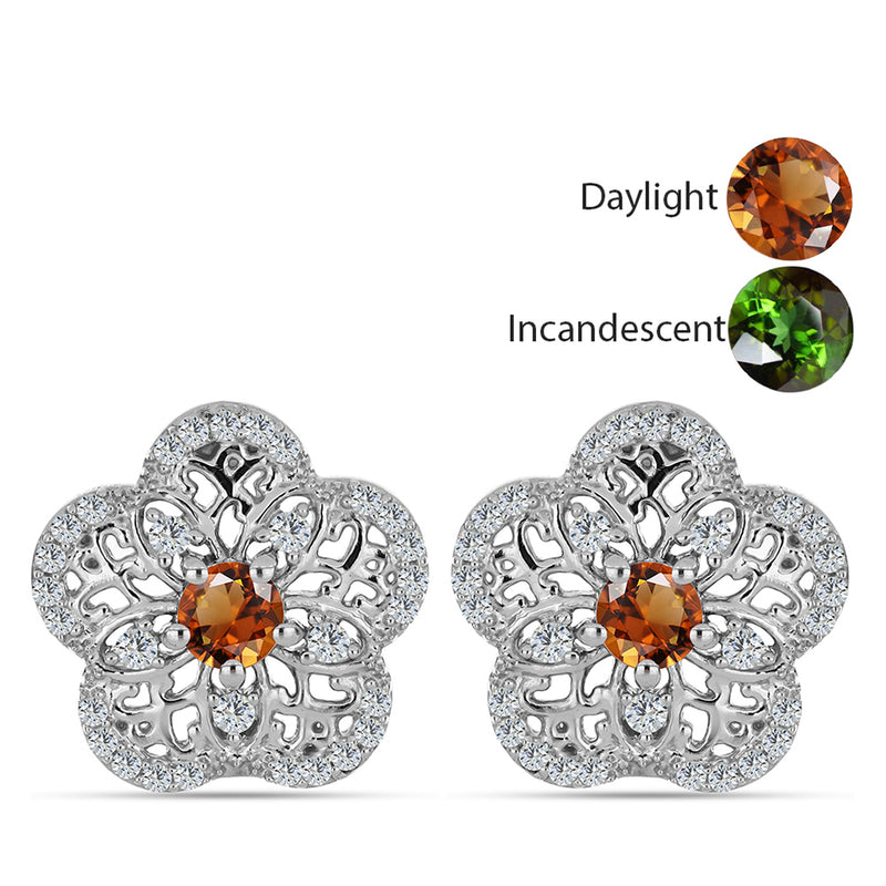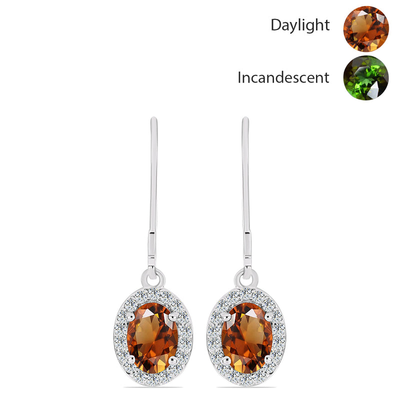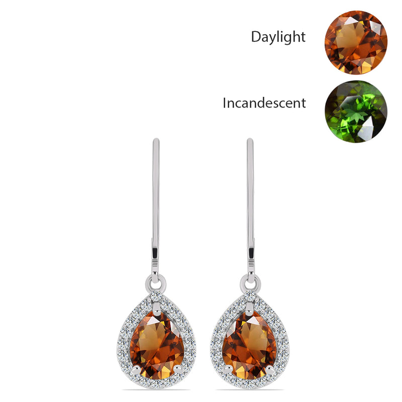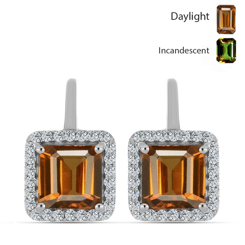Ezüst Fülbevaló Minősített laboratóriumban előállított Anatóliai Zultanit-tal és Fehér Topázzal