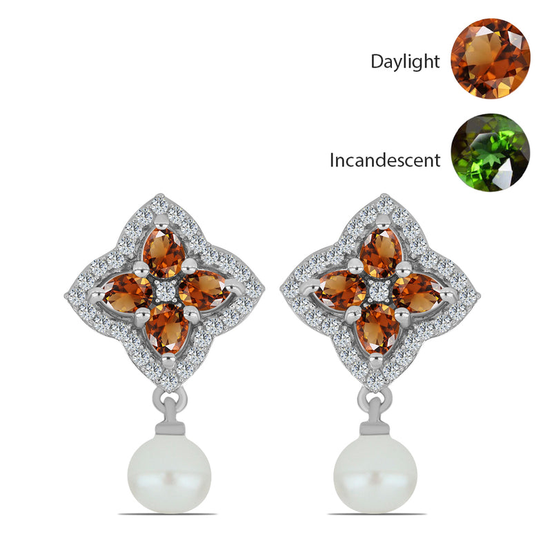 Ezüst Fülbevaló Minősített laboratóriumban előállított Anatóliai Zultanit-tal és Fehér Édesvízi Kagylógyönggyel