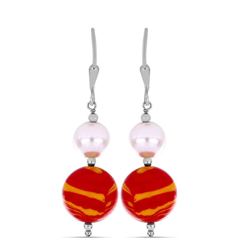 Ezüst Fülbevaló Oroszlán Mancs Jáspissal és Fehér Édesvízi Kagylógyönggyel