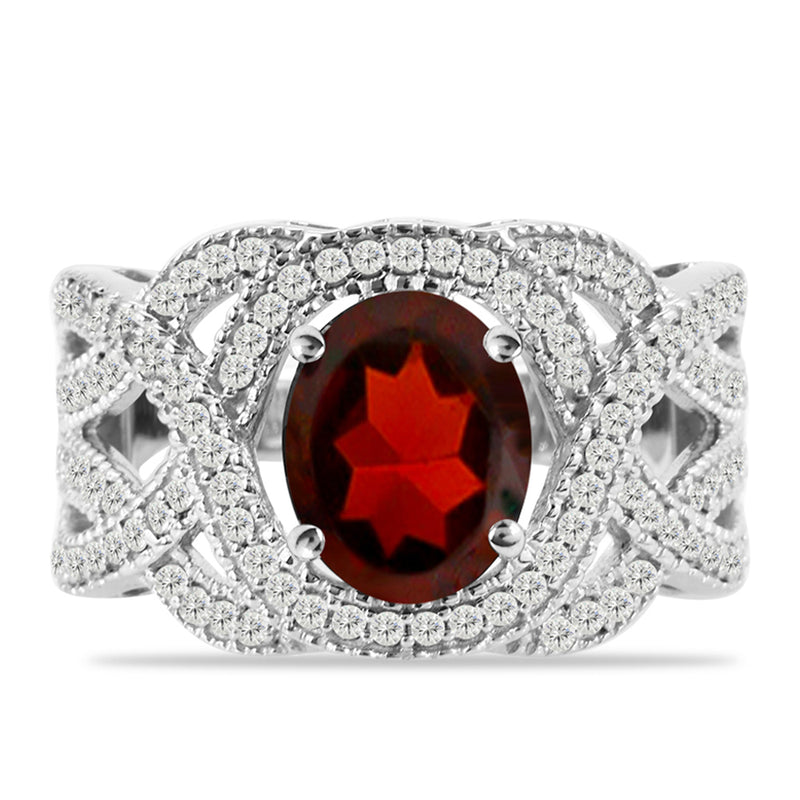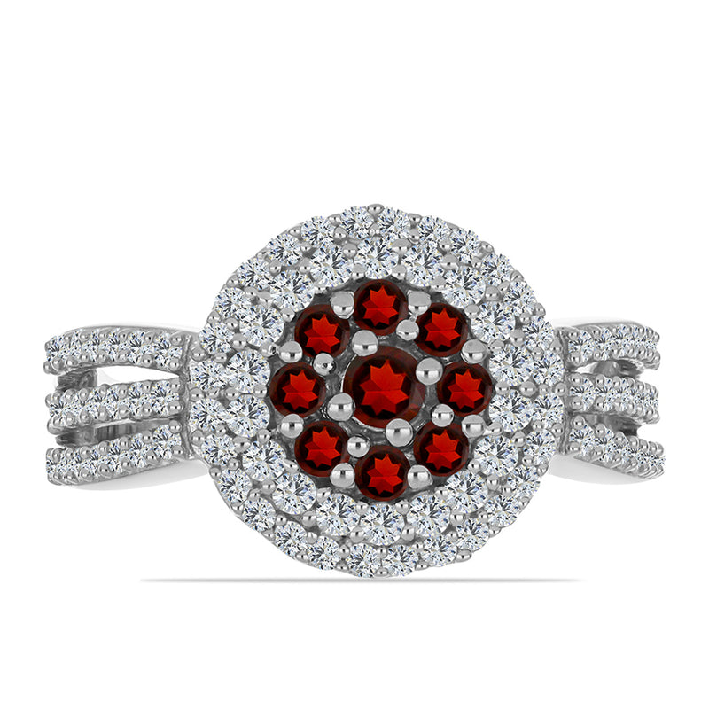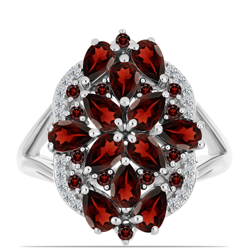 Ezüst Gyűrű Barton Gránáttal és Fehér Topázzal