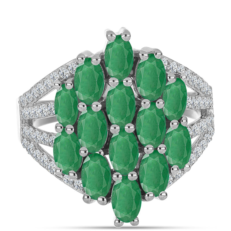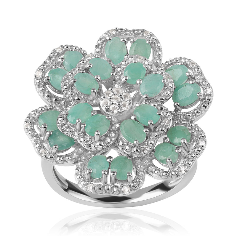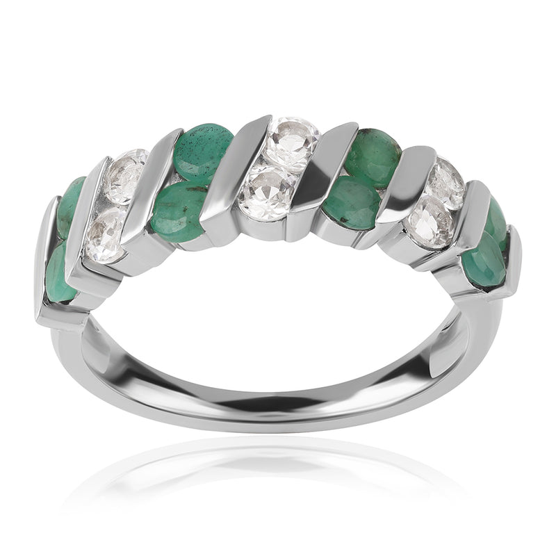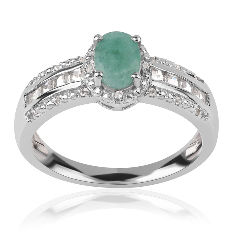 Ezüst Gyűrű Brazil Smaragddal és Fehér Topázzal