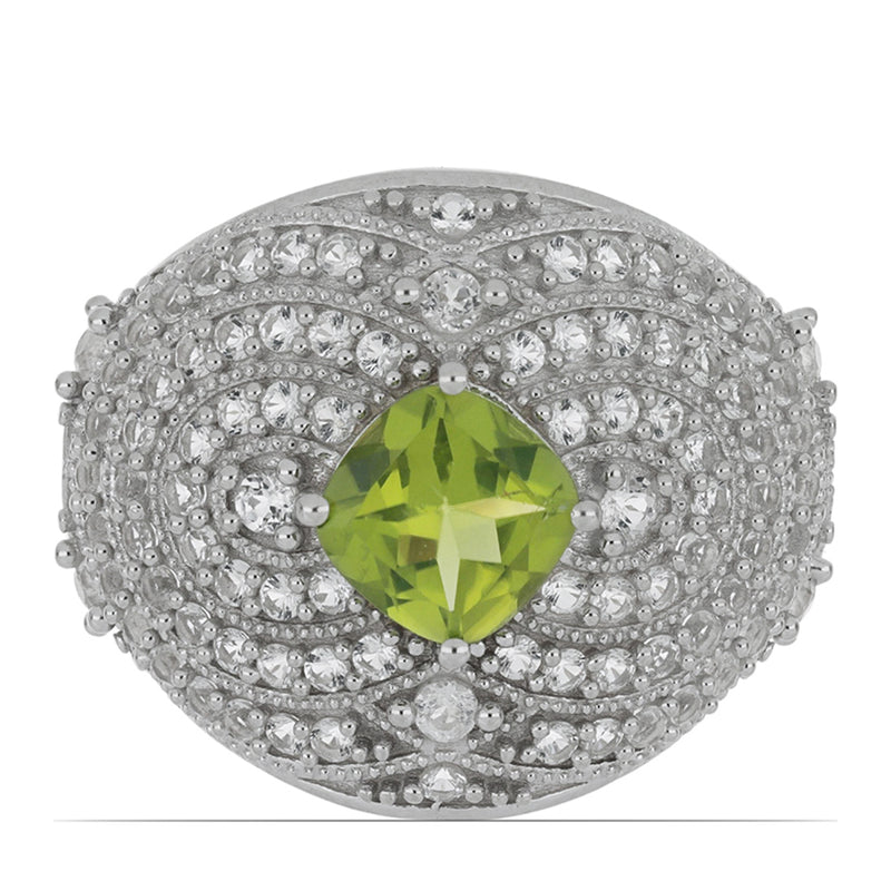 Ezüst Gyűrű Changbai Peridottal és Fehér Topázzal