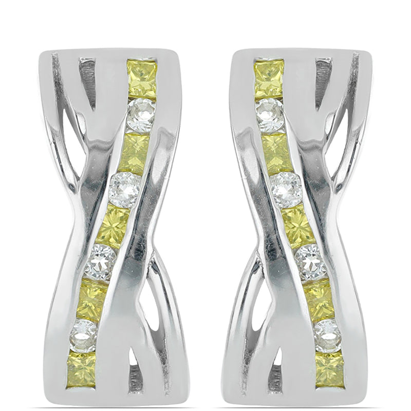 Ezüst Fülbevaló Sárga Gyémánttal és Fehér Cirkónnal