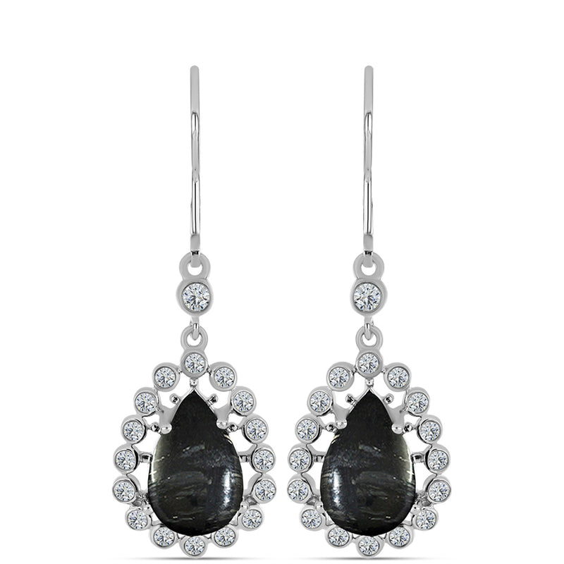 Ezüst Fülbevaló Suwari Fekete Onixszal és Fehér Topázzal
