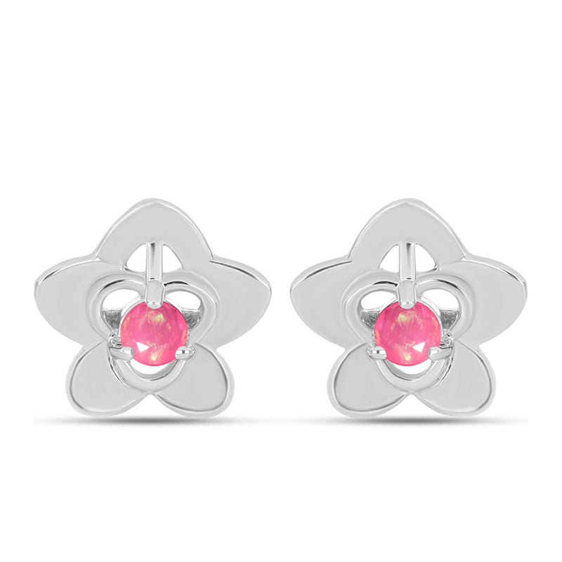 Ezüst Fülbevaló Rózsaszínű Zafírral és Fehér Cirkónnal