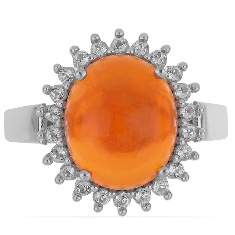 Ezüst Gyűrű Lega Dembi Narancs Opállal és Fehér Topázzal