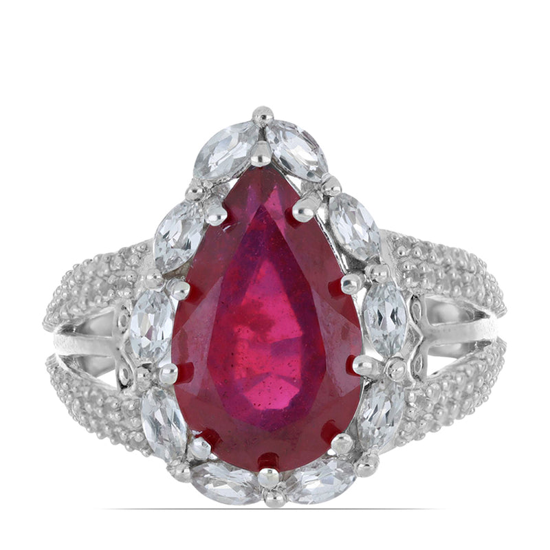 Ezüst Gyűrű Madagaszkári Rubinnal és Fehér Topázzal