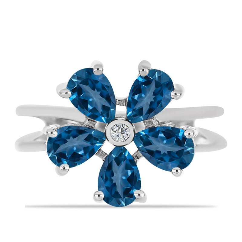Ezüst Gyűrű London Kék Topázzal és Fehér Topázzal