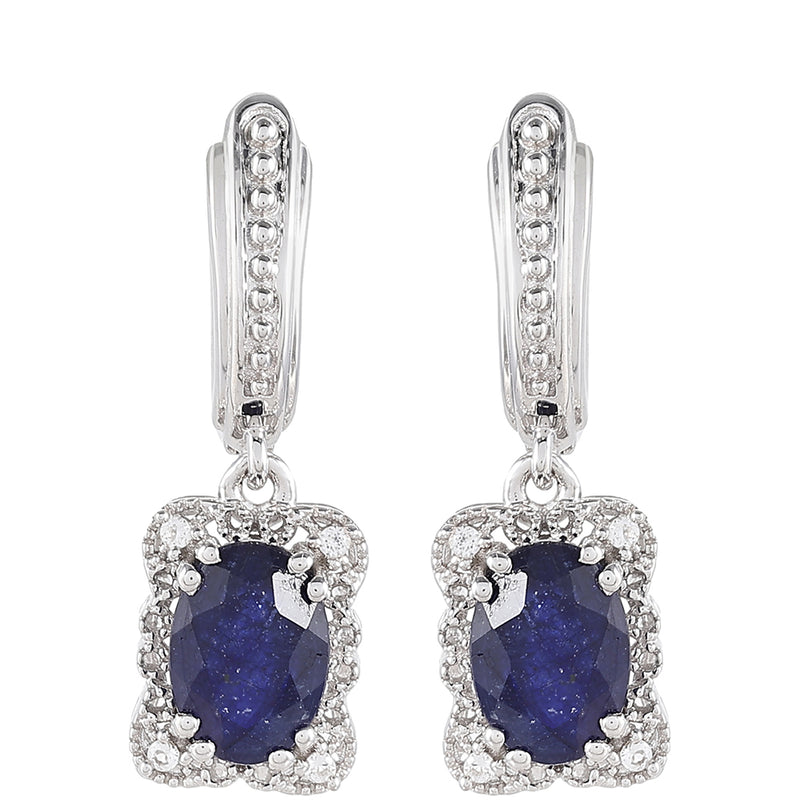 Ezüst Fülbevaló Thai Zafírral és Fehér Topázzal