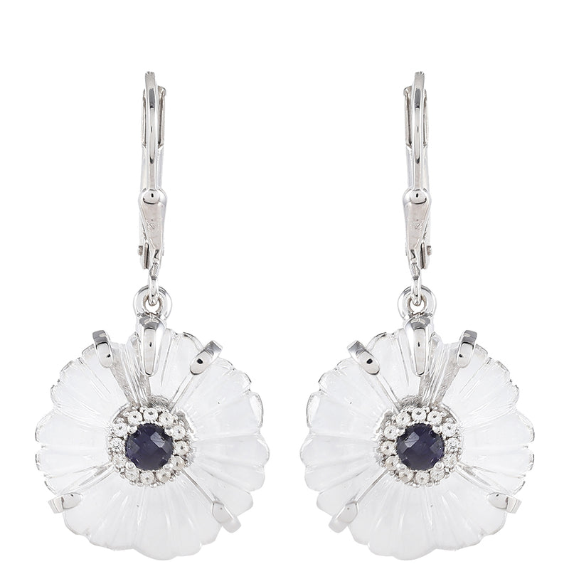 Ezüst Fülbevaló Thai Zafírral és Kristály Kvarccal