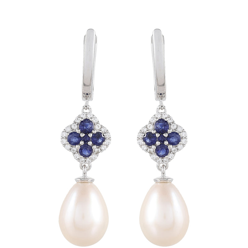 Ezüst Fülbevaló Thai Zafírral és Fehér Édesvízi Kagylógyönggyel
