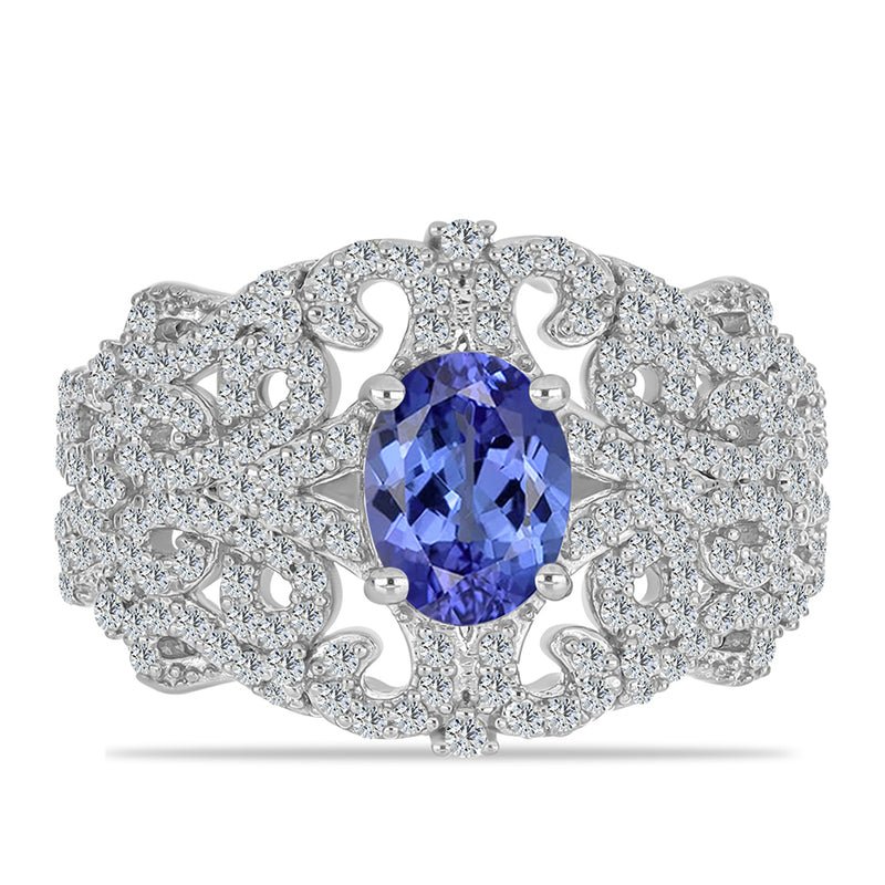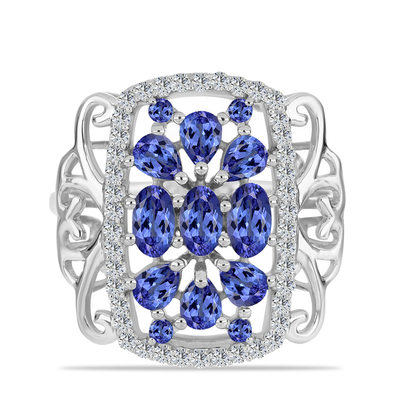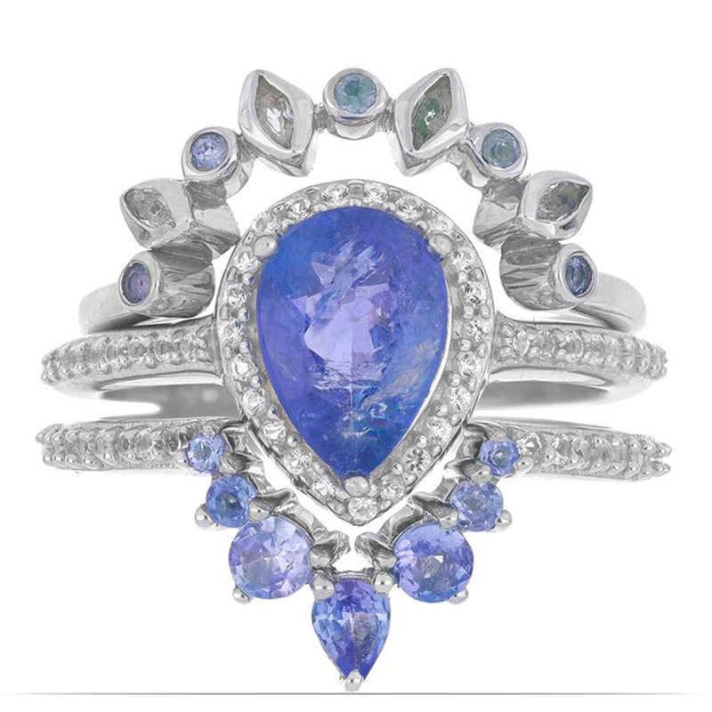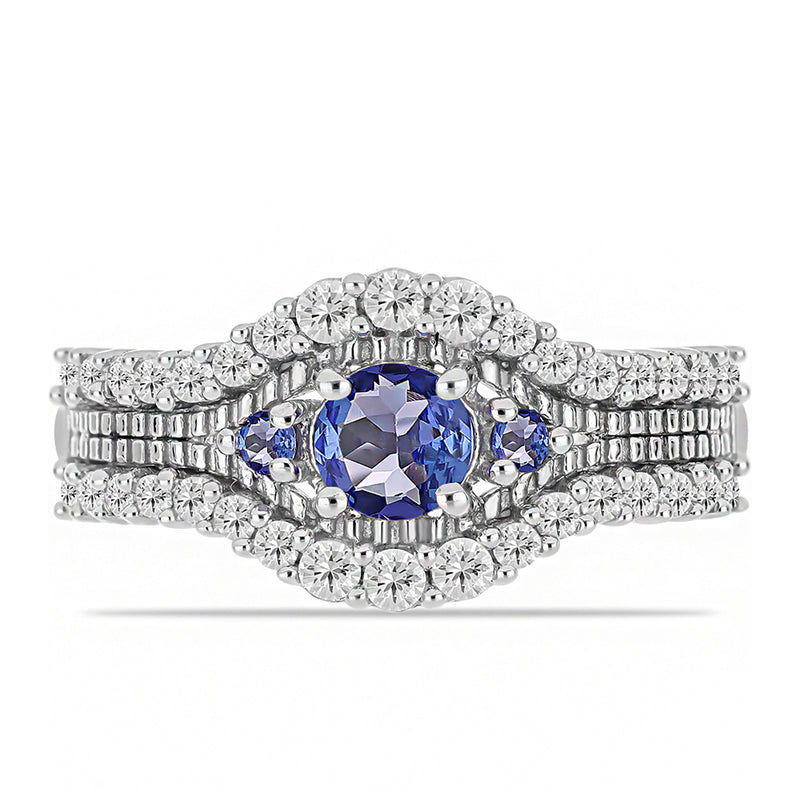 Ezüst Gyűrű Tanzanittal és Fehér Topázzal