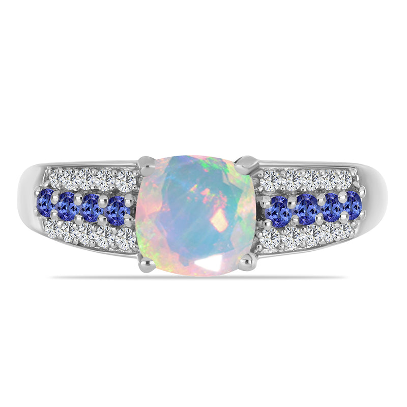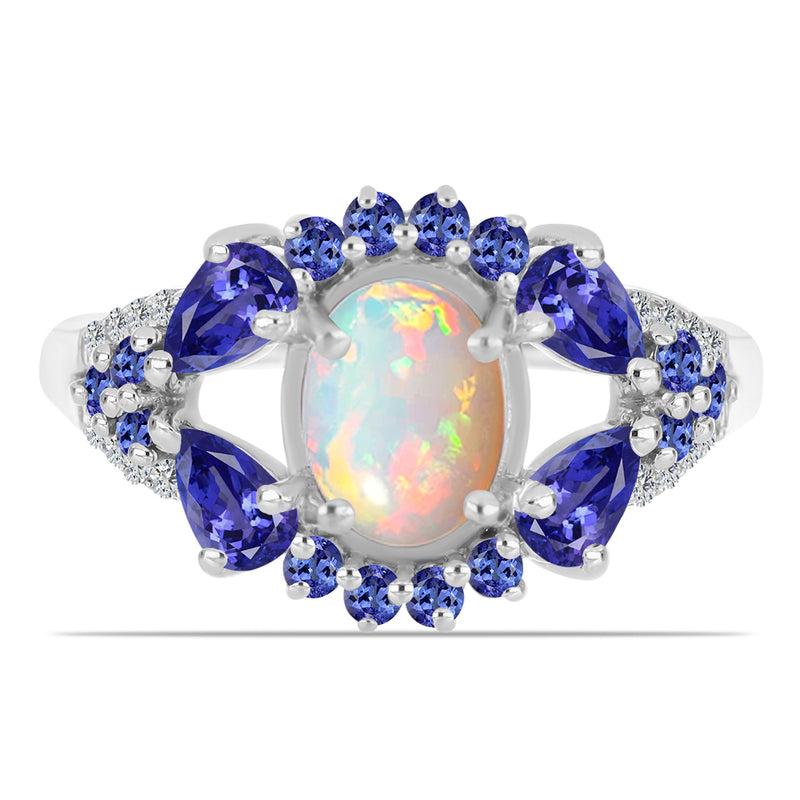 Ezüst Gyűrű Tanzanittal és Etiópiai Opállal