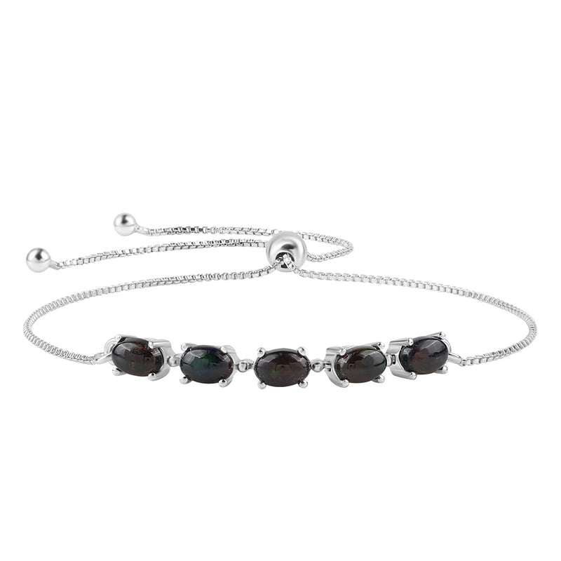 Ezüst Karkötő Lega Dembi Éjfekete Etiópiai Opállal és Fehér Topázzal