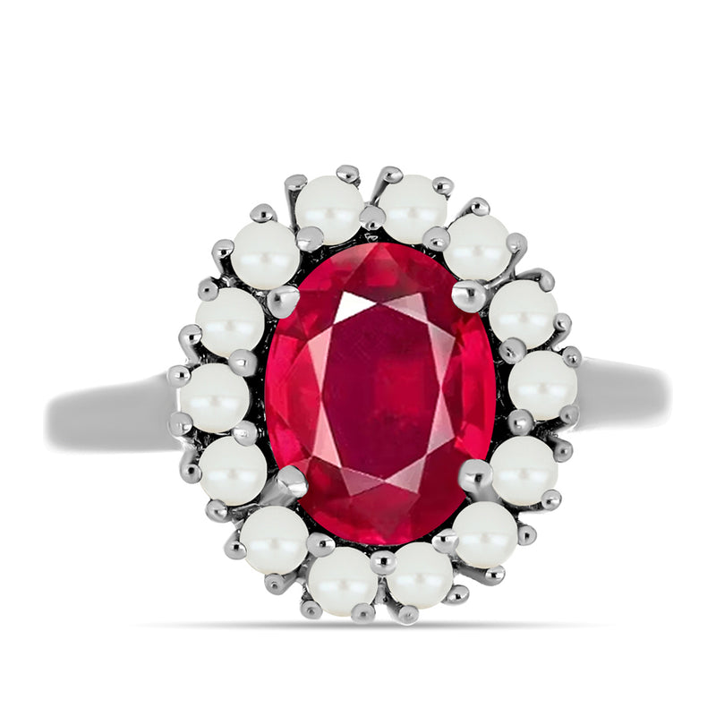 Ezüst Gyűrű Madagaszkári Rubinnal és Fehér Édesvízi Kagylógyönggyel