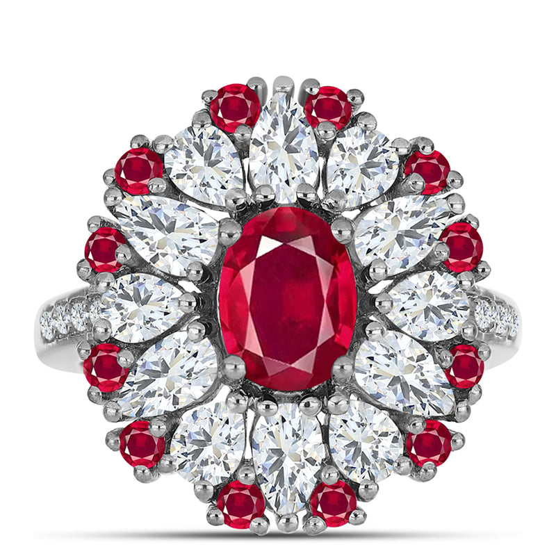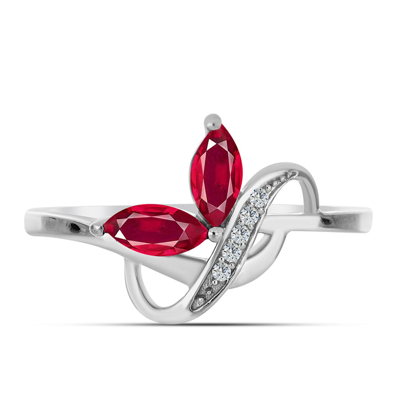 Ezüst Gyűrű Madagaszkári Rubinnal és Természetes Fehér Cirkónnal