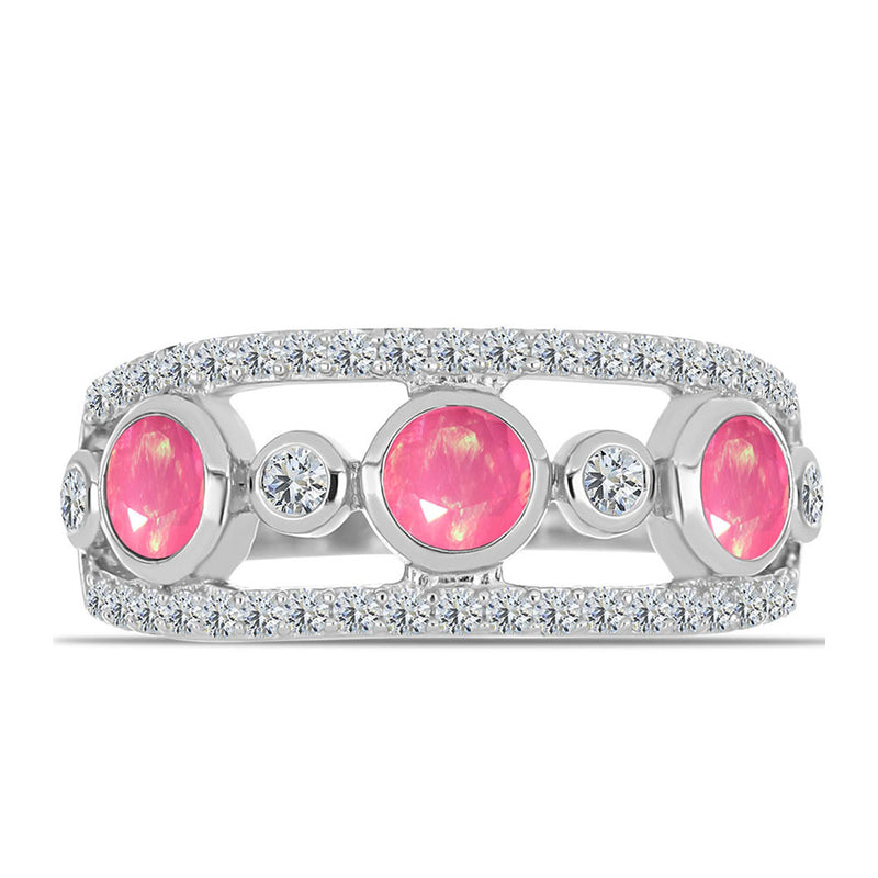 Ezüst Gyűrű Rózsaszínű Opállal és Fehér Topázzal