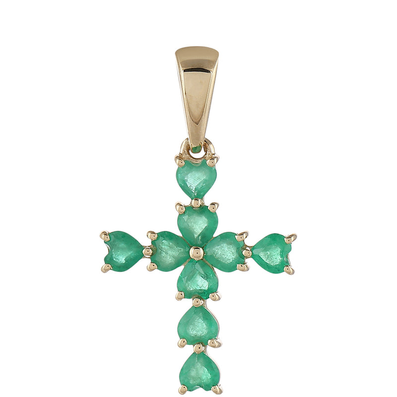 Kereszt 9 Karátos Arany Medál Brazil Smaragddal
